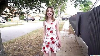 Fucked a college girl and made her orgasm with a creampie inside without taking off her panties
