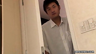 Mayuka Akimoto, a Asian beauty, gives a mind-deep throating deep throat that results in a burst of jizz on her magnificent face.