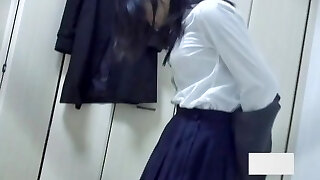 Adorable teenage in knee socks plays with her vibrator