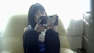 Cute Japanese girls in glasses stroke a cock and jerk