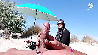 I shocked this muslim by pulling my spear out on the public beach, OMG her hubby will be here soon