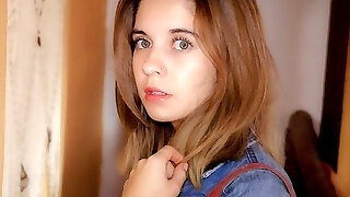 Russian teen shows her stockings and fellates big man sausage of her BF