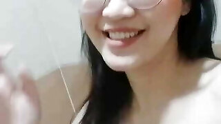 Skinny Chinese girl Mitsuki is taking a shower and masturbating her pussy