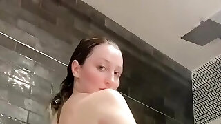 Mature hot blondie rubs her cunt tantalizingly in a solo shower scene