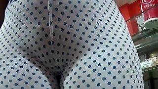 Rubbing big fat chubby cameltoe pussy hairy bush round butt