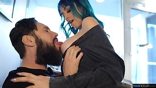 Blue haired chick Jewelz Blu is fucked by bearded beau