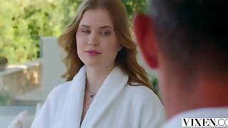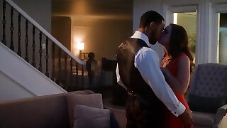 Elderly woman in erotic, black stockings enjoys to have casual lovemaking with her younger neighbor