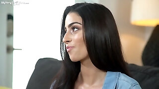 Brutal friend Seth Gamble fucks sweet brunette girl in mish position