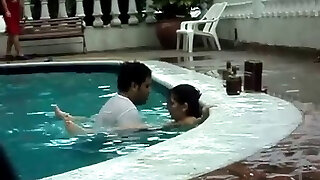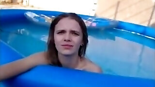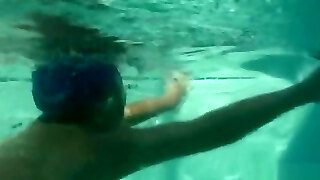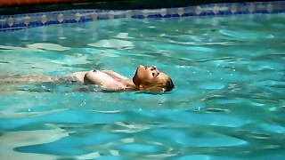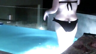 Nude ebony babe Lala Ivey is swimming in the pool before a horny fuck-a-thon with her white neighbor