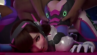Three Dimensional Porn Cartoon: Slim Petite Elastic-assed D.Va Gets Her Snatch Drilled Hard In Front Of a Sexy Shadow