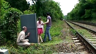 Picked up blonde Cougar with big boobs is boinked outdoors by stud outdoors
