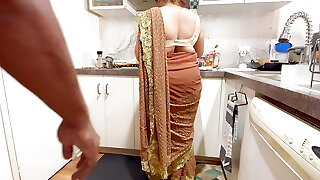 Indian Couple Romance in the Kitchen - Saree Sex - Saree lifted up, Ass Smacked Breasts Press