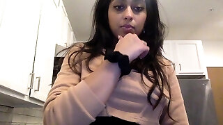 Dazzling Brunette Teen Rubbing Her Shaved Pussy in Solo Video
