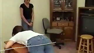 Kinky woman is spanking her naughty step- daughter-in-law in the late afternoon, to teach her a lesson