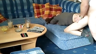 Ugly old whore gets her extremely hairy butthole fucked stiff on sofa